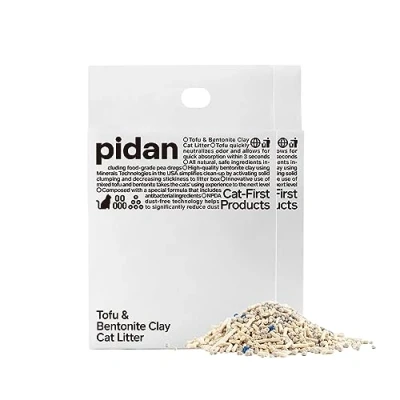 pidan Mix Tofu Cat Litter (2x2.4kg/6L bag) 100% Natural Unscented with Bentonite, Extra Strong Clumping, Effortless Scooping, Flushable,Long Lasting Odour Control,Dust free,Low tracking