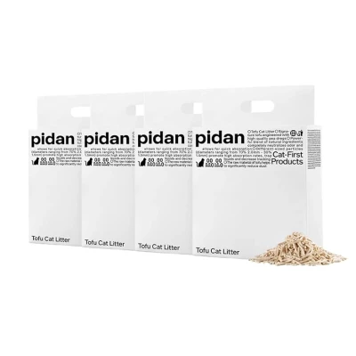 pidan Tofu Cat Litter 9.6 kg (4x2.4kg) 100% Natural, Flushable & Clumping, Ultra Absorbent, Fast Drying, Dust Free, Low Tracking Odour Control