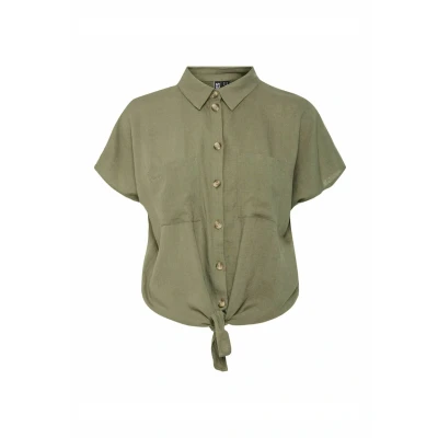 Pieces Kurzarm Pcpia Buttondown blouse, Women's, Size: XL, Deep lichen green