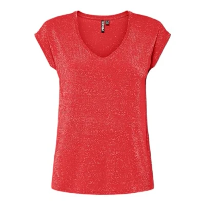 Pieces Lurex Stripes Noos Bc Women's Pcbillo Tee, Red (Poppy red), XL