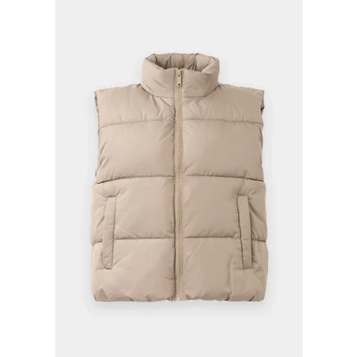 Pieces Pcbee NEW Short Puffer VEST Waistcoat, Women's, Size: Small, Silver mink