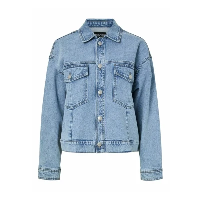 Pieces Pcelma denim jacket, Women's, Size: Medium, Light blue
