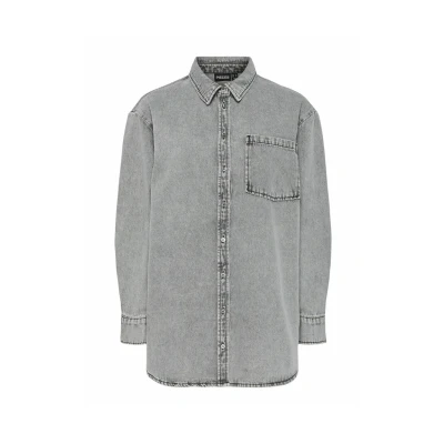 Pieces Pcmaisie Buttondown blouse, Women's, Size: XS, Grey denim