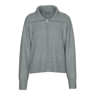 Pieces Pcmalou LONG Sleeve ZIP Cardigan, Women's, Size: Small, Medium grey