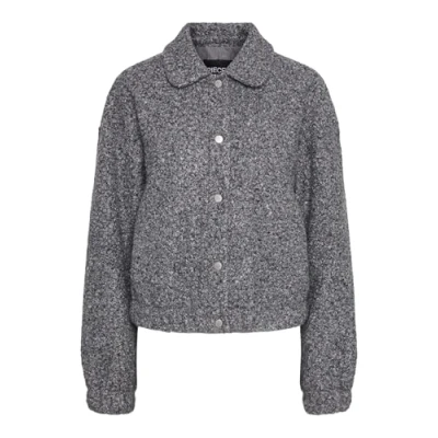 Pieces Pcnadia Short Jacket coat, Women's, Size: Large, Medium grey melange