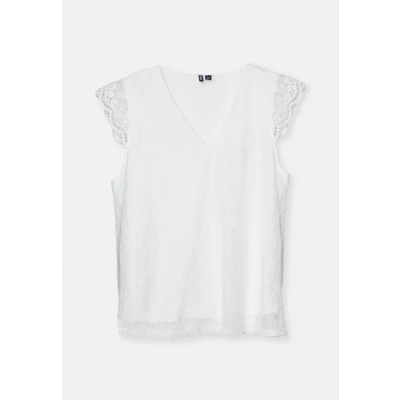 Pieces Pcolline Vneck Print Tshirt, Women's, Size: Medium, Cloud dancer