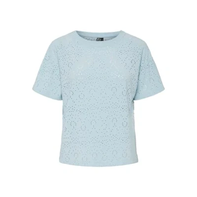Pieces Women's Pcabby SS Brod ANG Tee Noos BC T Shirt, Cashmere Blue, XL