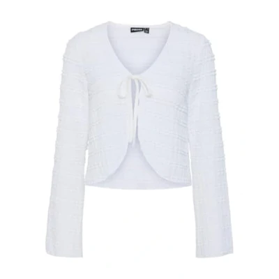 Pieces Women's Pcanine Ls Tie Mm Top, Bright White, S