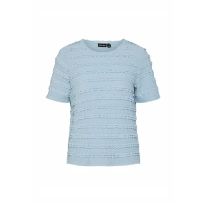 PIECES Women's Pcanna Ss O Neck Top Noos Bc, Cashmere Blue, S