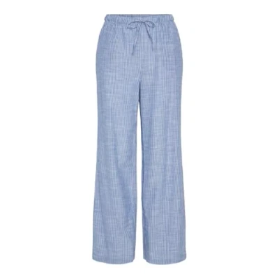 PIECES Women's Pcapia Hw Wide Pants Mm Trouser, Nautical Blue/Stripes: Bright White, L