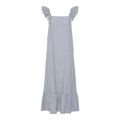 PIECES Women's Pcapia Sl Square Neck Ankle Dress Mm, Coronet Blue/Stripes: Bright White, L