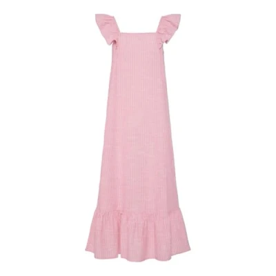 PIECES Women's Pcapia Sl Square Neck Ankle Dress Mm, Pink Lemonade/Stripes: Bright White, S