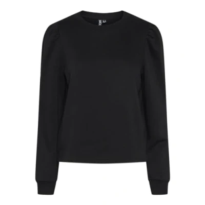 PIECES Women's Pcchilli Ls Puff Sweat Noos Cp Bc Sweatshirt, Black, S
