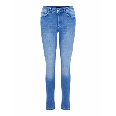 Pieces Women's PCDELLY DLX SKN MW MB249 BA/NOOS BC Jeans, Medium Blue Denim, S/32