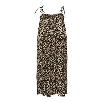 PIECES Women's Pcglinda Strap Dress Sww, Chicory Coffee/AOP:Leo, M