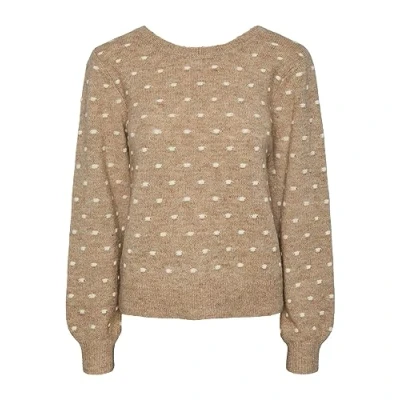 PIECES Women's Pcjessica Ls Reversible Knit Bc Sweater, Silver Mink/Detail:Birch Dots, M
