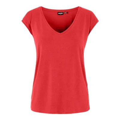 PIECES Women's Pckamala Noos Bc Tee T Shirt, Red (Poppy red), M