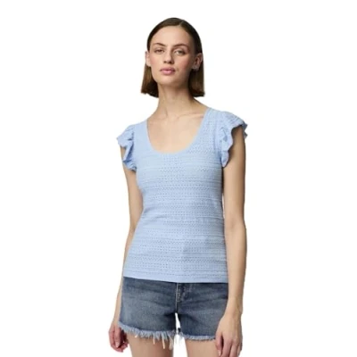 PIECES Women's Pcanna Ss O Neck Top Noos Bc, Cashmere Blue, S