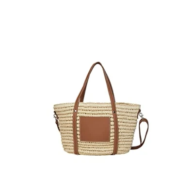 PIECES Women Pcluna Straw Cross Body Bag, Nature/Detail: Cognac, Keine Angabe