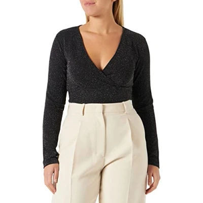 PIECES Women's Pclina Ls Cropped V Neck Top Long Sleeve Shirt, Black, L