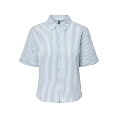 PIECES Women's PCLORNA SS Shirt BC Blouse, Airy Blue/Stripes:Stripes, S