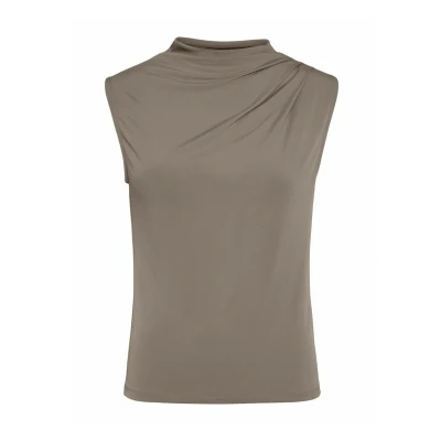 PIECES Women's Pcmadison Sl Draped Top Noos Bc, Taupe Gray, M