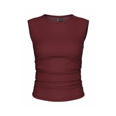 Pieces Pcmadison Ruching NOOS Top tawny port Sale at Zalando UK | Outer fabric material: 95% polyester, 5% elastane | Sale order at Zalando UK! Size: XS. Color: Tawny port. Pattern: plain.