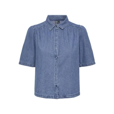 Pieces Women's Pcmag Ss Shirt Short Sleeved Blouse, Medium Blue (Medium Denim), M