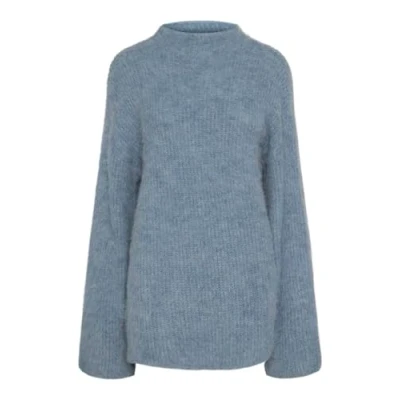 PIECES Women's Pcmathilde LS O Neck Knit Noos Bc Jumper, Faded Denim, L