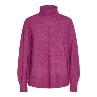 PIECES Women's Pcmalou LS Rollneck Knit Noos Bc Jumper, Festival Fuchsia/Detail: Melange, L