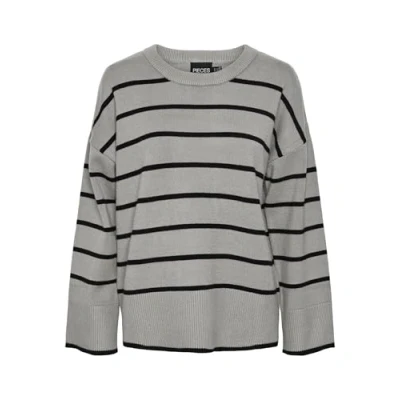 PIECES Women's Pcmathilde LS O Neck Knit Noos Bc Jumper, Medium Grey Melange/Stripes: Black, L