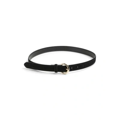 PIECES Women's Pcnalis Suede Jeans Belt Leather, Black/Detail: Gold Trim, 95