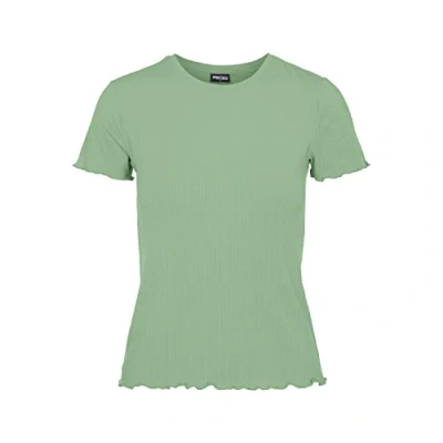 PIECES Women's Pcnicca SS O Neck Top Noos T Shirt, Quiet Green, Large