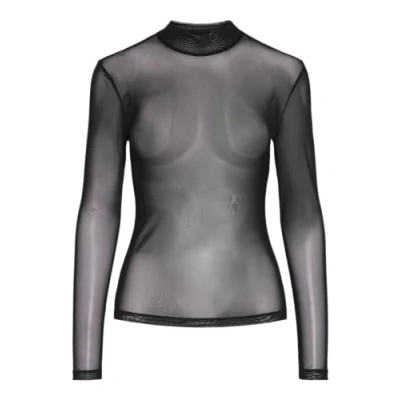 PIECES Women's Pcninni LS T Neck Mesh Top Noos Bc Longsleeve Shirt, Black, XL