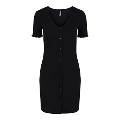 PIECES Women's Pcnukisa Ss Dress Noos Bc, Black, XS