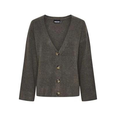 PIECES Women's Pcnuna Ls V Neck Knit Cardigan bc Sweater, Morel/Detail: mélange, M