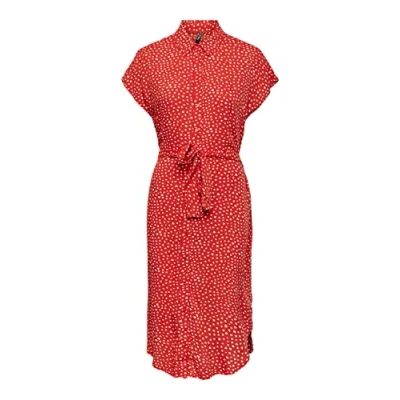 PIECES Women's Pcnya SS Shirt Dress BC, Poppy Red/AOP: Hearts, M