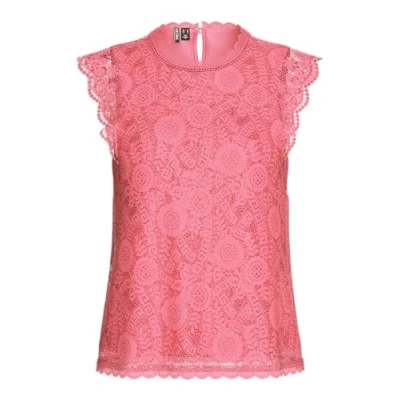 PIECES Women's Pcolline Sl Lace Top Noos, Pink Lemonade, XS