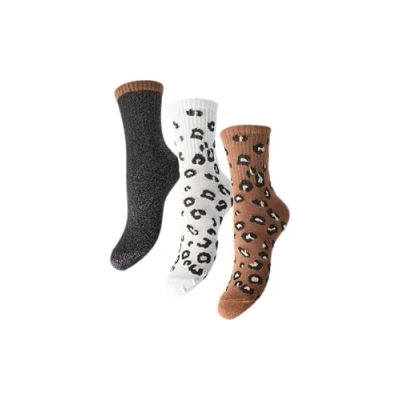 PIECES Women's Pcprima Animal Socks Bc, Biscuit/Pack:3 Pack BLC/Lurex White Pepper/Leo, One Size