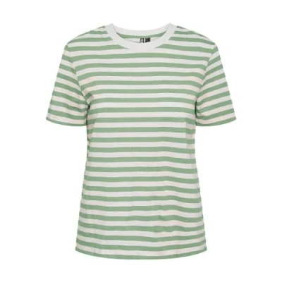 PIECES Women's Pcria Ss Tee Stripes Noos Bc T Shirt, Quiet Green/Stripes:Bright White, XS