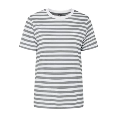 Pieces Women's Pcria Ss Tee Stripes Noos Bc T Shirt, Ultimate Grey, L