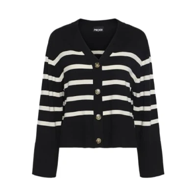PIECES Women's Pcsia Ls Cardigan Noos Bc Knitted Jumper, Black/Stripes: White, S
