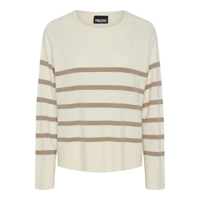 PIECES Women's Pcsia LS Knit Noos BC Knitted Jumper, White, M
