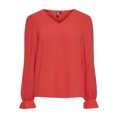PIECES Women's Pctiffany LS V Neck top Noos Bc Long Sleeve Blouse, Bittersweet, XS