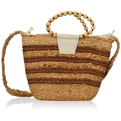 PIECES Women's Pcvera Small Jute Bag Sww, Nature/stripes: brown, keine Angabe
