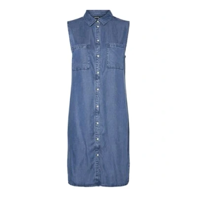 PIECES Women's Pcvilje Sl Dress, Medium Blue (Medium Denim), L