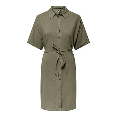 PIECES Women's Pcvinsty SS Linen Shirt Dress Noos, Oatmeal, M