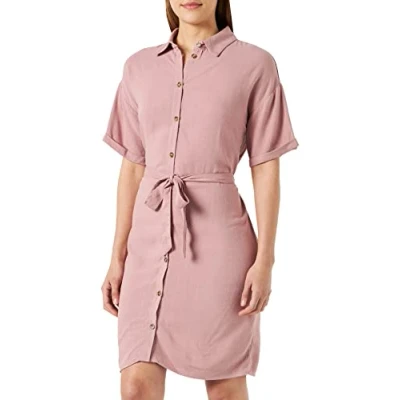 PIECES Women's Pcvinsty SS Linen Shirt Dress Noos, Oatmeal, M