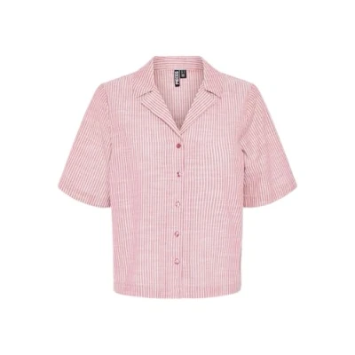 Pieces Women's Shirt, Pink Lemonade/Stripes: Bright White, S