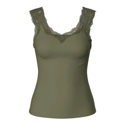 PIECES Women's Pcbarbera Lace Top Noos Top, Deep Lichen Green, S